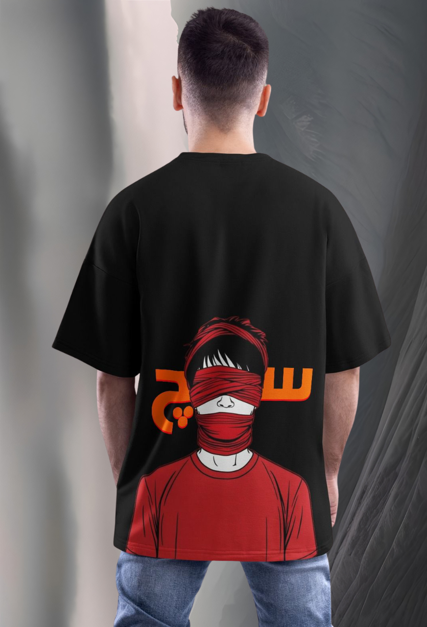 The Kiver Clothing “Such” t-shirt features a unique and artistic orange Urdu typography design. “سہج” represents peace, simplicity, and serenity, and this design embodies that spirit with bold, clean lines.
