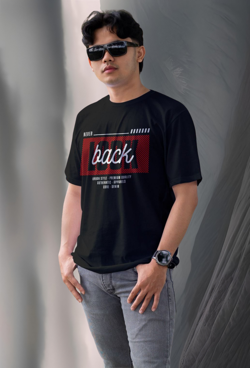 Stay motivated and forward-thinking with the Kiver Clothing “Never Look Back” t-shirt. Bold red and black typography emphasizes the importance of moving forward without dwelling on the past.